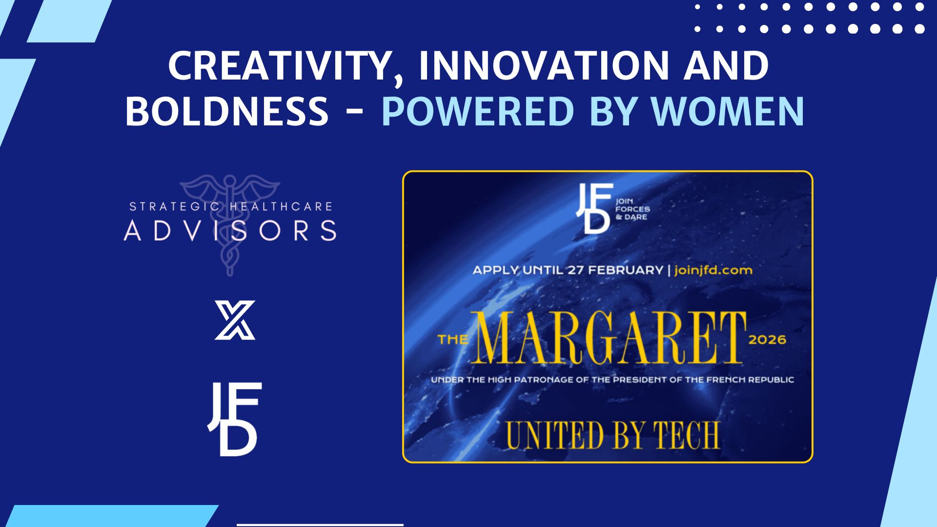 By aligning the five vital forces of the economy — Talent, Capital, Corporates, Institutions, and Media — JFD transforms cutting-edge innovation into solid order books and concrete business opportunities. It’s in this spirit that we are joining forces with JFD in the call for applications for the 2026 Margaret Awards.